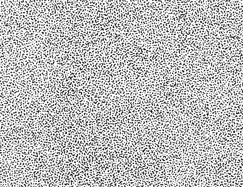 Replacing Cerebus’ tone has become pretty routine - it usually works to copy and paste a patch of repeating dots from a nearby area, line it up with the neighboring dots, and then erase anything that extends past the repaired section. But with the textures above, there isn’t a simple repeating pattern that we can identify and leverage in the same way. Instead, we use one of several techniques depending on the size and shape of the missing area. My favorite is “drawing” in the texture with Photoshop’s stamp tool, being careful to blend the new shapes with the existing tone in a consistent way. A crucial last step is printing out the restored page, squinting, and looking for telltale lines that reveal where the fix was. If I did a good job, the tone is seamless. If not, it looks like this: