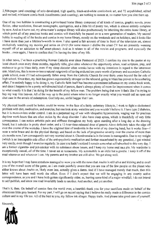 Regardless, it's impressive and aside from health issues, he comes across, as much as one can via letter posted to AMOC, as content, disciplined, inspired and perhaps experiencing great life satisfaction at being able to do what he loves while being free of his former dreaded day job.